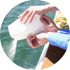また、散骨した場所へお参りに行くメモリアルクルーズ®で故人を偲ぶ方法もございますので安心してご利用ください。 -