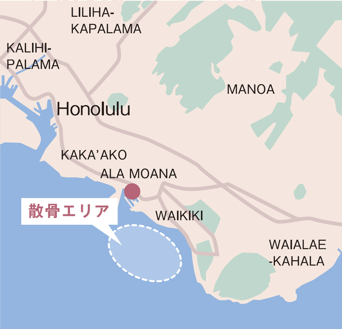 ハワイでは火葬されたご遺骨は粉末化されるのが一般的です。ハワイのローカルの方々の間でも、弔いのために親族や友人などを集めて船をチャーターすることや、サーファーによる海洋散骨の儀式は文化として広く受け入れられています。