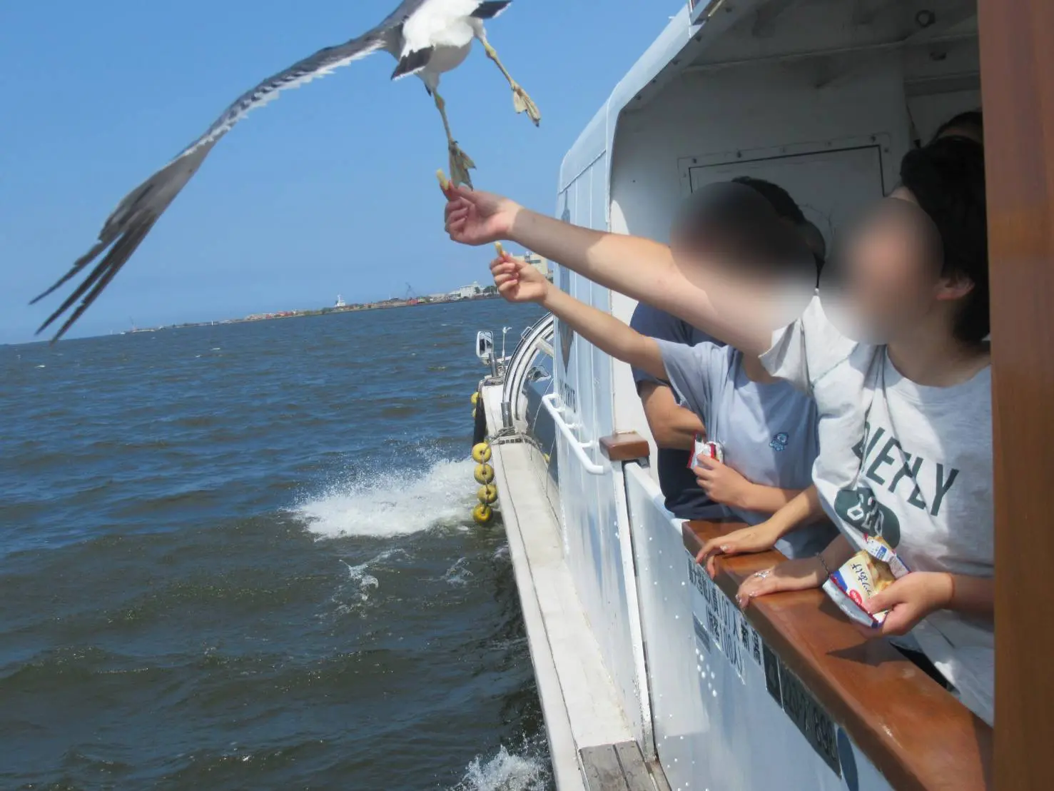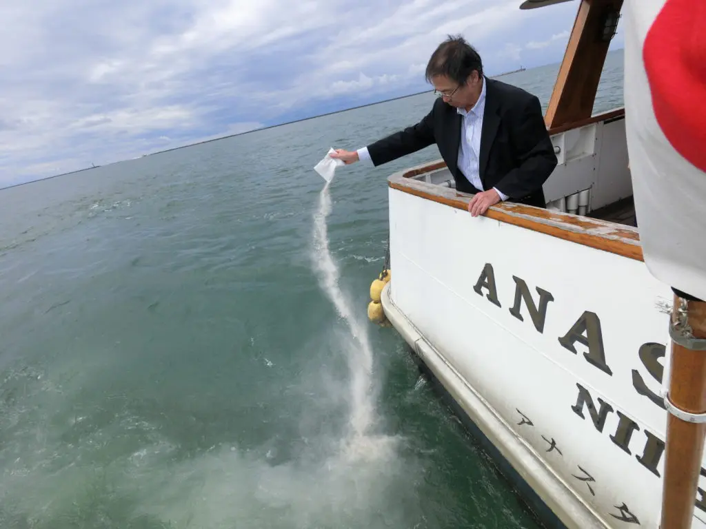 新潟空港の沖、佐渡島を臨むポイントで散骨を行い、お天気が良ければカモメの餌付けをしながら帰港します。