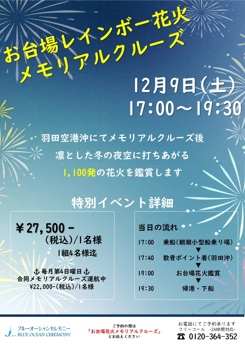 【初開催】花火鑑賞つき合同メモリアルクルーズ