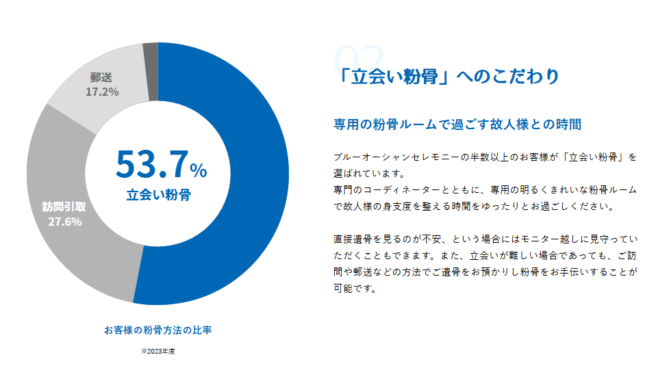 と心配されている方に、ぜひブルーオーシャンセレモニーの”立会粉骨”をオススメします。