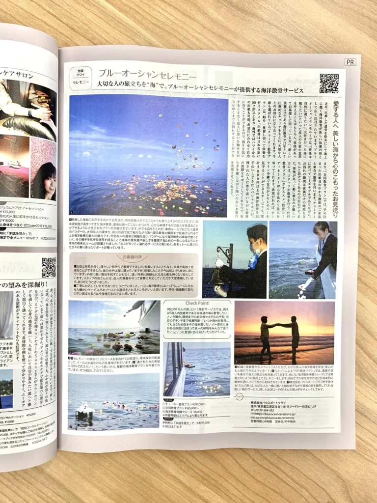 内の「もっと人生を充実させる!おすすめスポット・アイテム大特集」にブルーオーシャンセレモニーの海洋散骨を掲載していただきました。