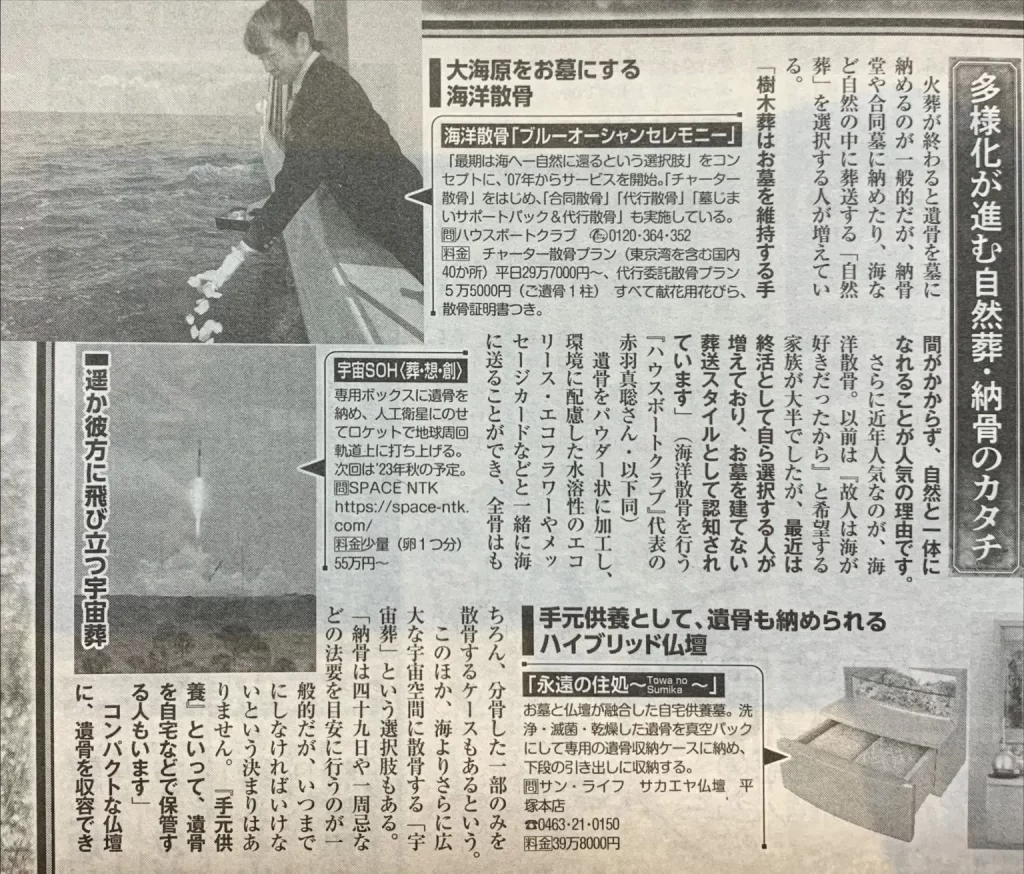 11/17発売の女性セブン「長いお別れ会、小さいお墓」の特集に弊社代表赤羽のコメントが掲載されました。