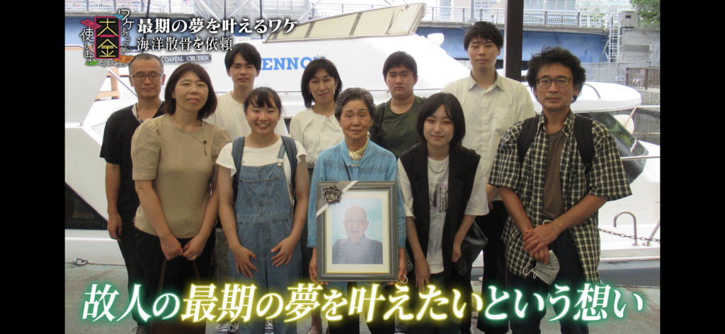 2022年9月12日放送のTBS・月バラナイト「ワケあって、大金使います」にて、8月にブルーオーシャンセレモニーでチャーター散骨を実施したお客様の様子が放送されました。