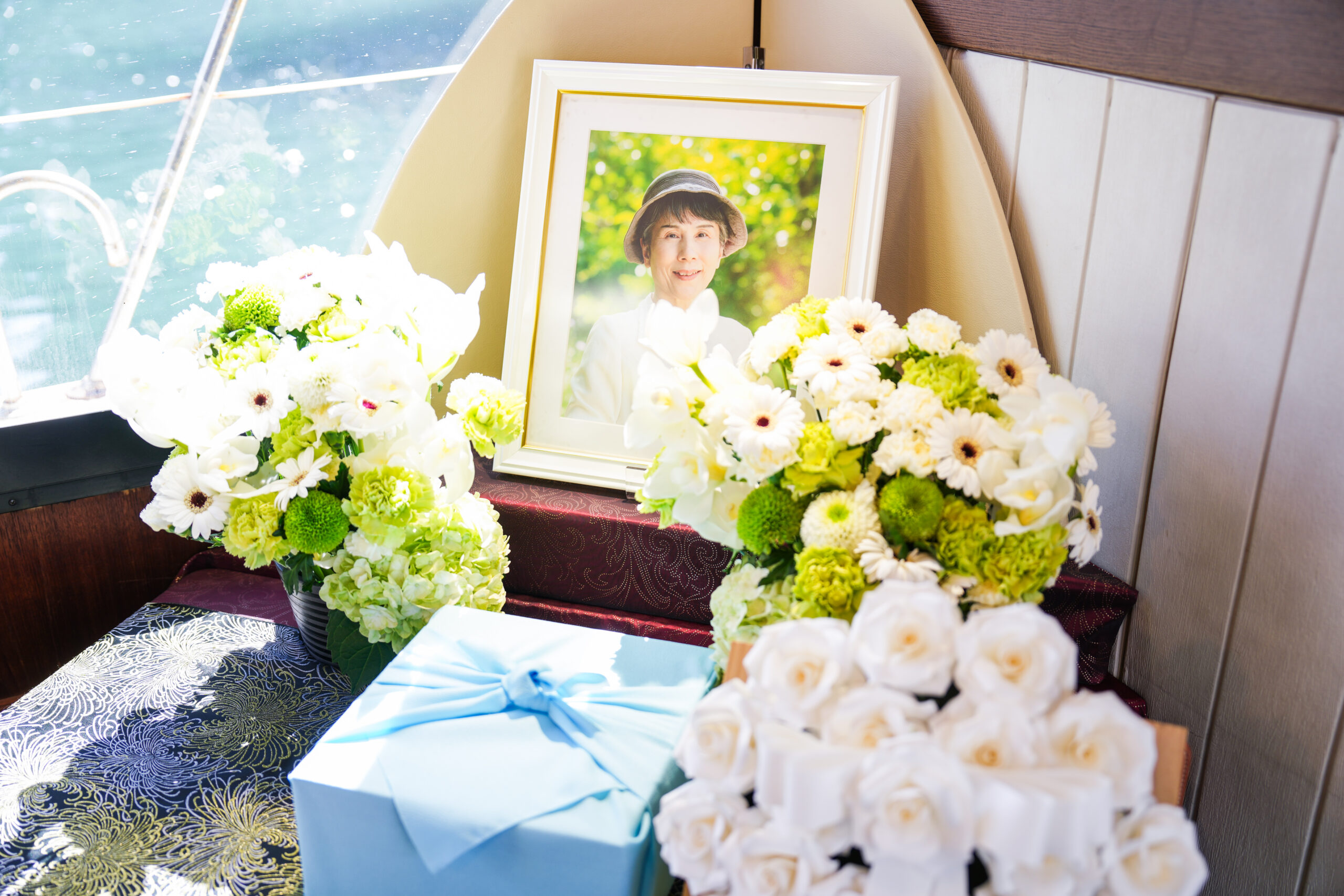 遺影のまわりを生花で飾り祭壇をおつくりできます。