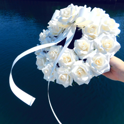 真っ白なリースは海の上で美しい目印になります。